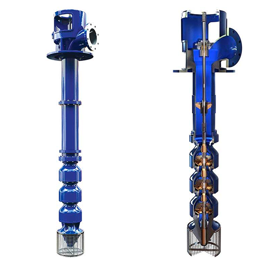 The VTP pump line is normally designed to operate in wells or sumps. Its bowl assembly consists primarily of a suction case or bell, one or more pump bowls and a discharge case. The pump bowl assembly is positioned in the sump or well at a depth to provide the proper submergence.